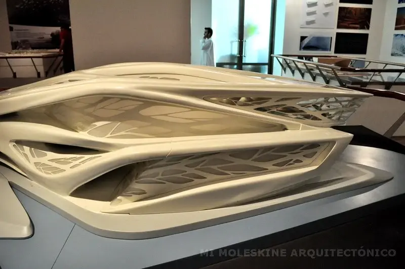Zaha Hadid has described the design of the Performing Arts Centre as: ‘A sculptural form that emerges from a linear intersection of pedestrian paths within the cultural district, gradually developing into a growing organism that sprouts a network of successive branches. As it winds through the site, the architecture increases in complexity, building up height and depth and achieving multiple summits in the bodies housing the performance spaces, which spring from the structure like fruits on a vine and face westward toward the water.’